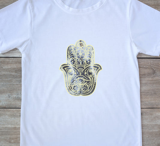 Wearable Art Unisex Tee "Azure Hamsa Hand"