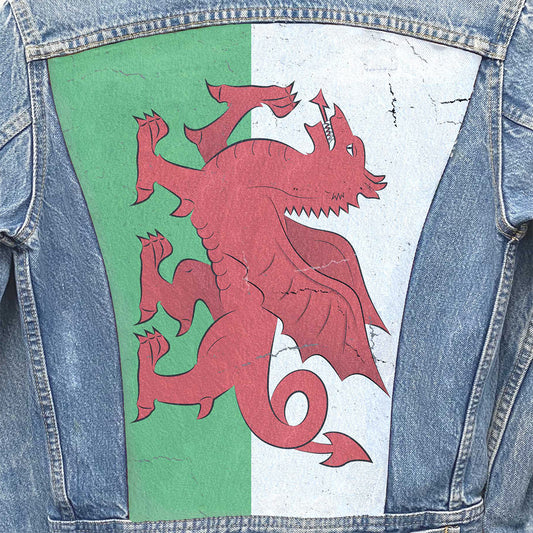 Upcycled Vintage Denim Jacket Flag Of Wales: The Red Dragon (Y Ddraig Goch)