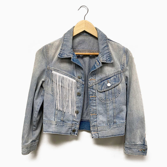 Upcycled Vintage Denim Jacket "Glitter Fringe"