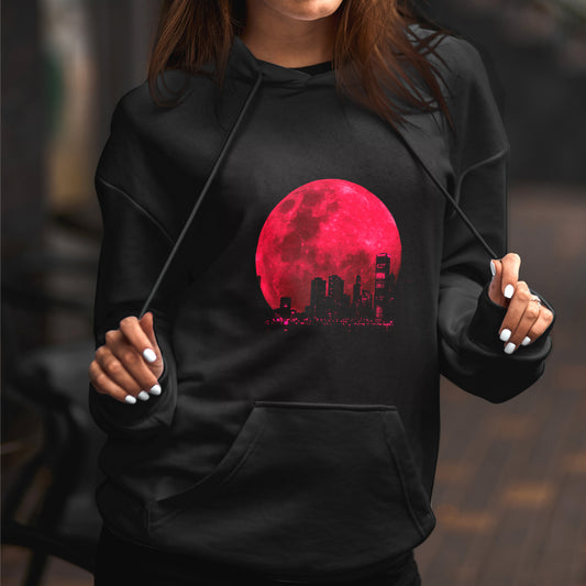 Wearable Art Unisex Full-Zip Hoodie "Crimson Skyline"