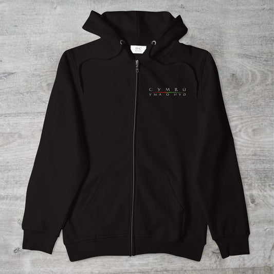 Wearable Art Monochrome Welsh Dragon Unisex Full-Zip Hoodie