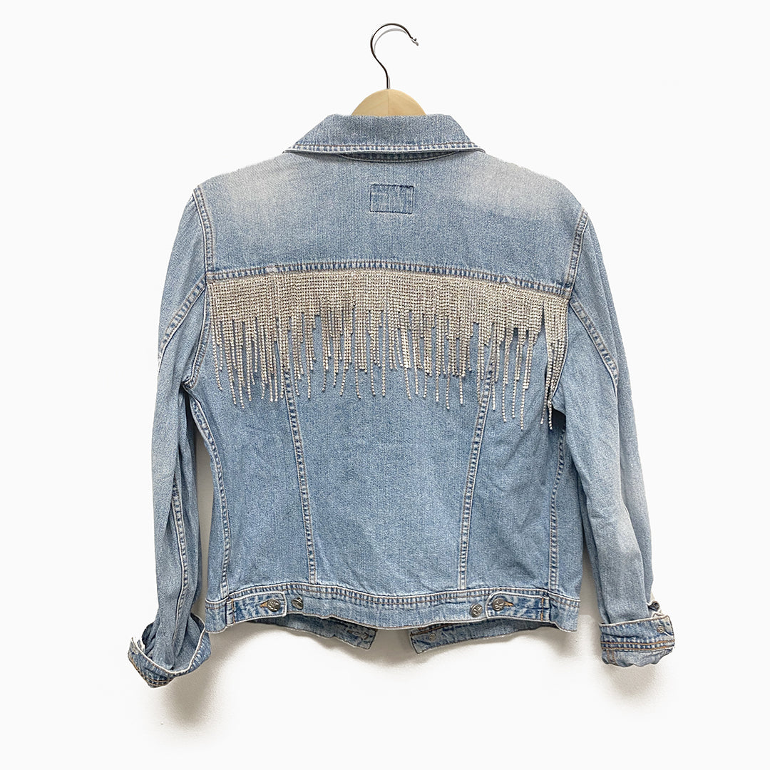 Upcycled Vintage Denim Jacket "Glitter Fringe"